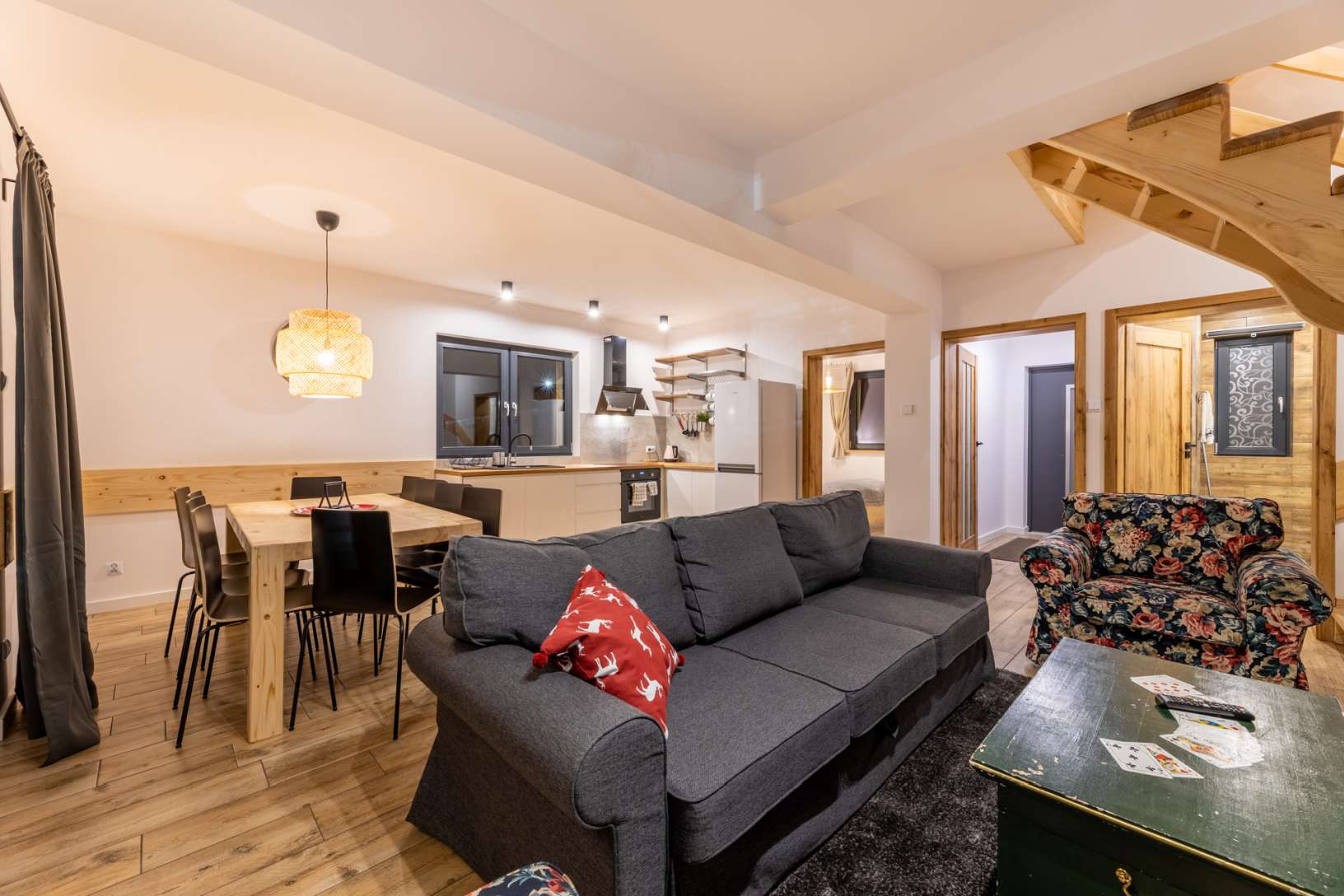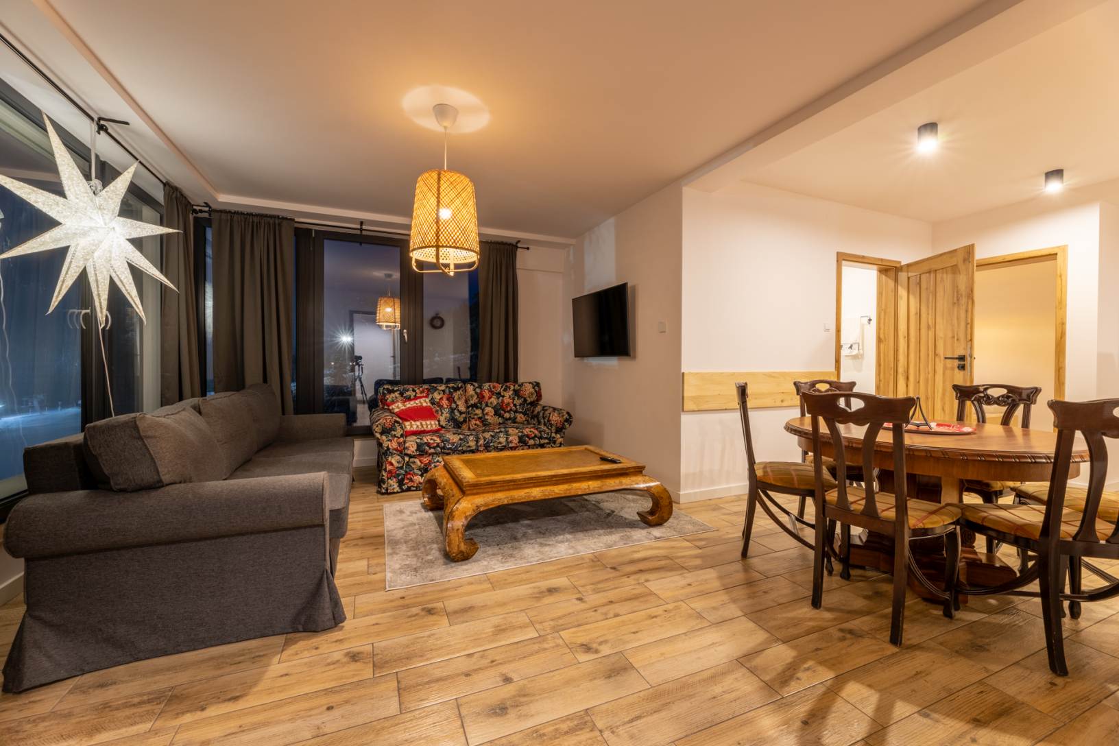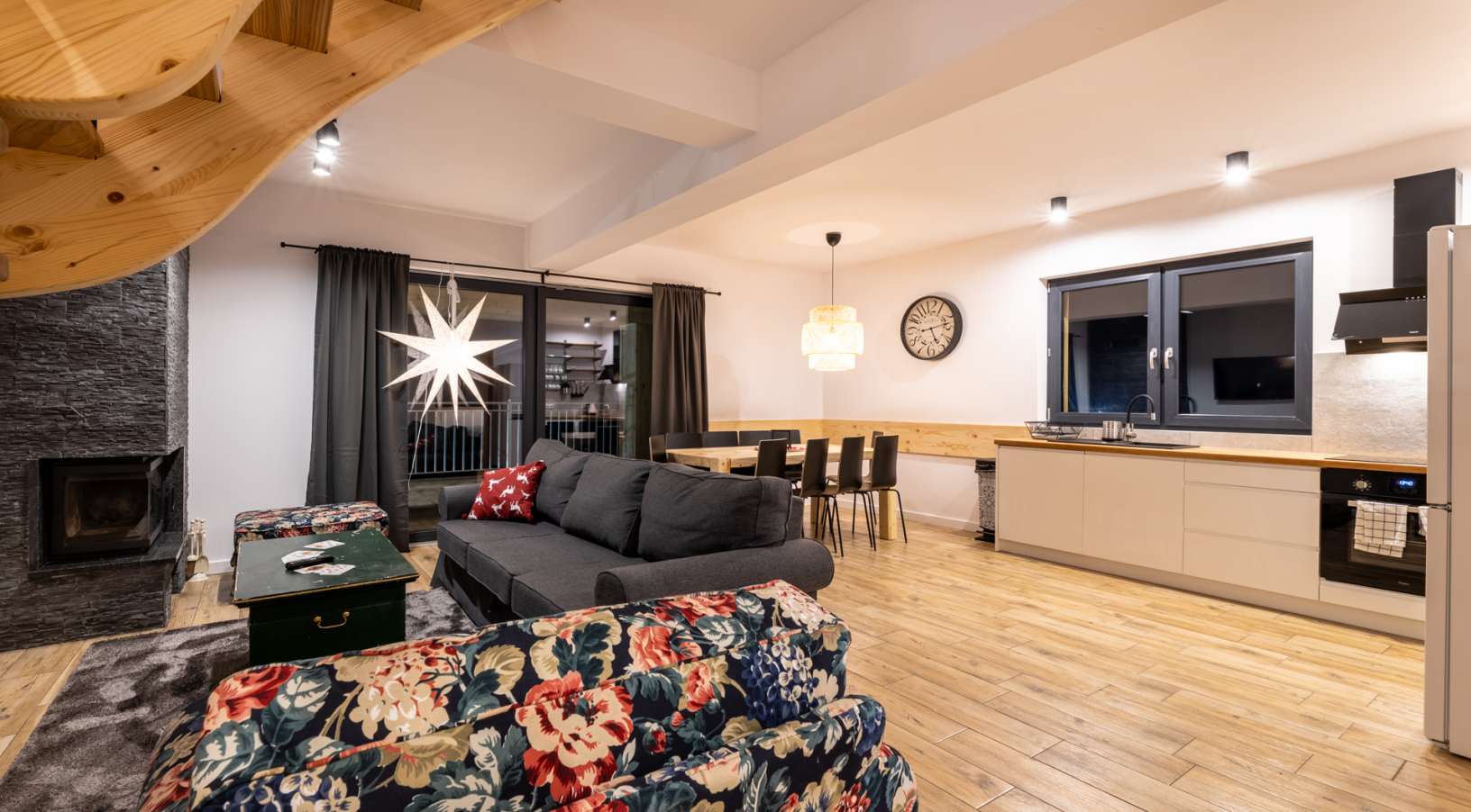 Wielopoziomowy apartament z przestronnym salonem wraz z aneksem kuchennym, 5 sypialniami oraz dużym tarasem. Polecany dla 14-16 os.